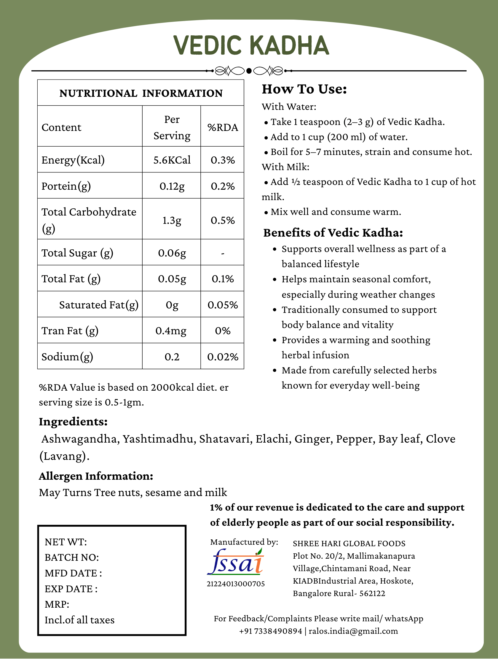 Ralos Vedil Kada is a traditional herbal drink prepared using a blend of carefully selected natural herbs and spices, known for their warming and protective properties. This time-tested formulation supports immunity, digestion, respiratory health, and overall wellness, especially during seasonal changes.